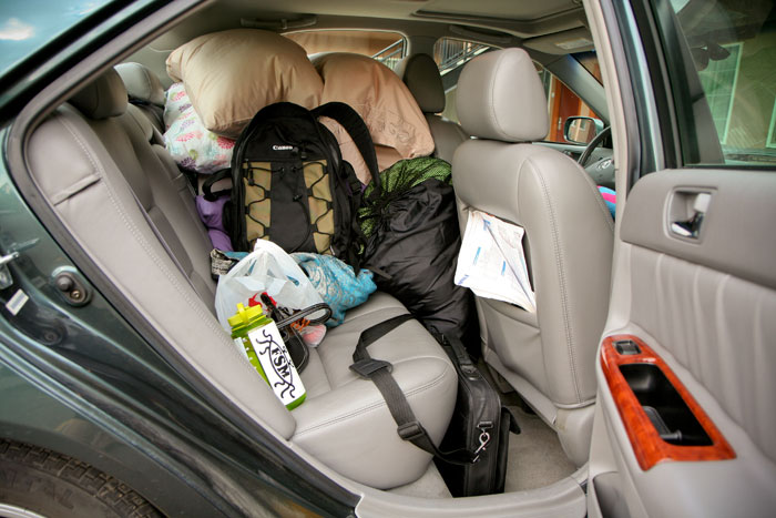 This uninhibited cat helped us pack Nene’s car for a while.