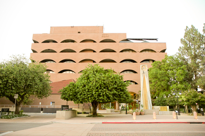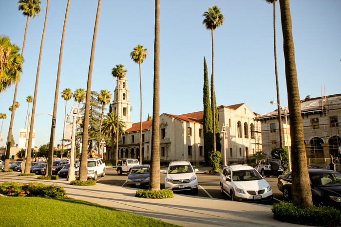 Walking to the main entrance and Las Campanas.