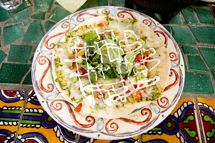 Enchiladas, chips, salsa, and table-side-made guacamole with a hint of orange. It’s fantastic.