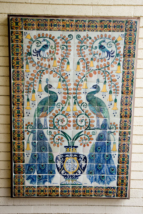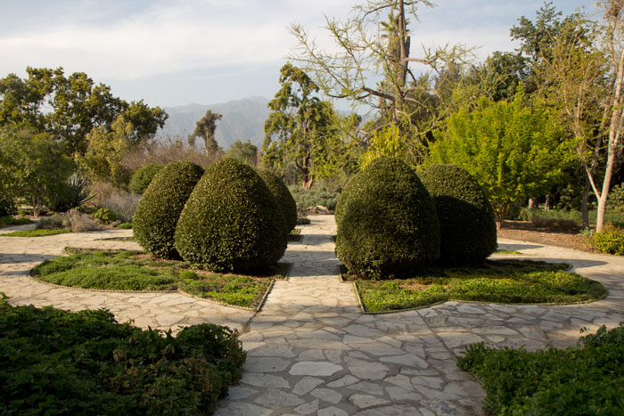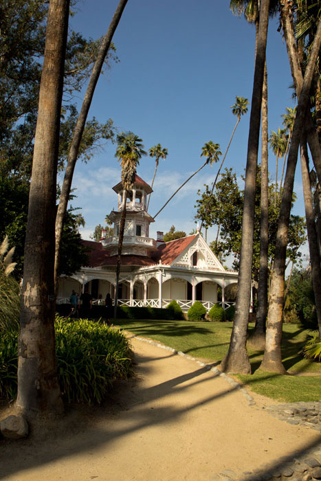 The Queen Anne Cottage, according to the sign: “Constructed by Elias Jackson (“Lucky”) Jackson in 1881. Designed by A.A. Bennett and intended for entertaining. There being no kitchen, meals were served from the nearby adobe (built by Hugo Reid in 1839) where Baldwin actually lived. Restored and dedicated May 18, 1954, as part of Los Angeles State and County Arboretum. Historical landmark no. 367: California State Park Commission.”