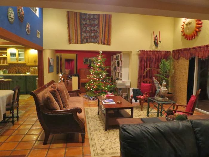 Our hostess had a live tree and a box of decorations ready for us, so Nene and I decorated the tree while Steven and Jeff mastered the 50-something inch TV. The house also has a hot tub on a closed-in porch off the bedrooms.