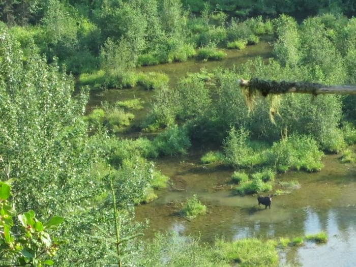 There is a moose in this photo. Our eagle-eyed shuttle driver stopped to let us get out and take photos.
