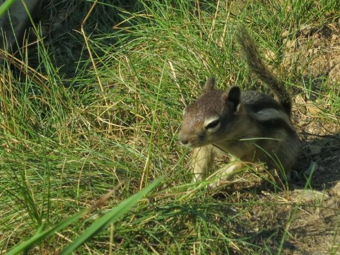 Watching chipmunks while waiting for the shuttle.