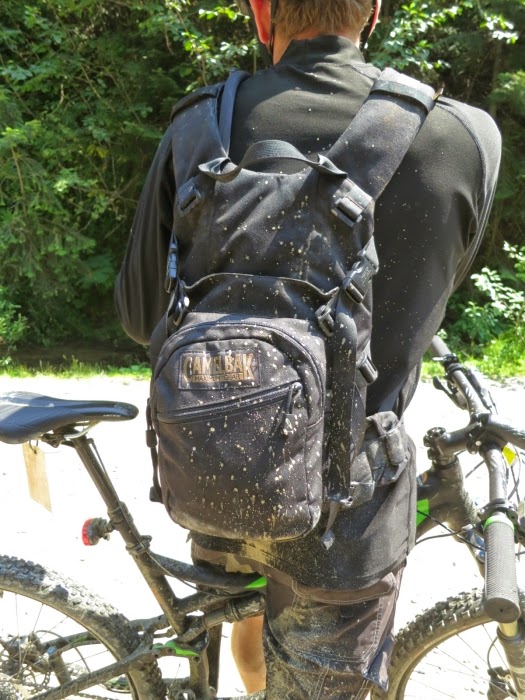 Entering the tunnel, mud flying in the tunnel, typical trail terrain, looking over the trestle (Steven got all the GoPro footage), and enjoying the view outside one of the tunnels.