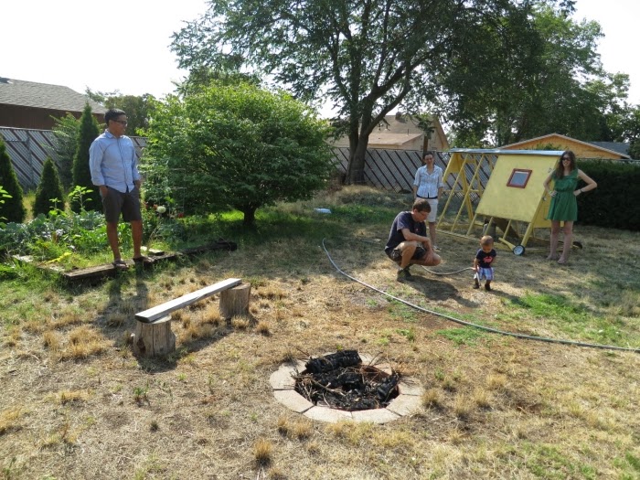 Just another idyllic Walla Walla summer morning in Nene’s backyard … the garden, the chickens, the child learning to use the hose.