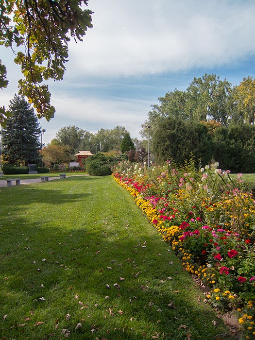 My dad’s front tire went flat while we were looping through the International Peace Gardens, so I thoughtfully documented the scenery rather than trying to be helpful with the tube swap.