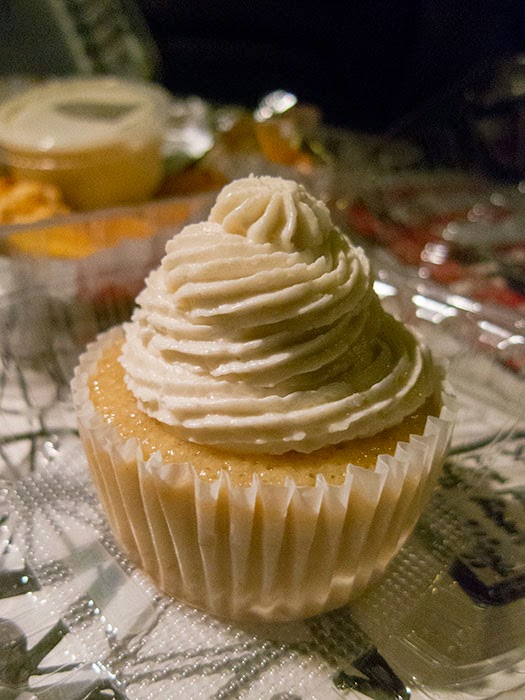 Dinner at Cruzer Pizza–their vegan pumpkin spice cupcake with heavenly coconut-milk-based frosting.
