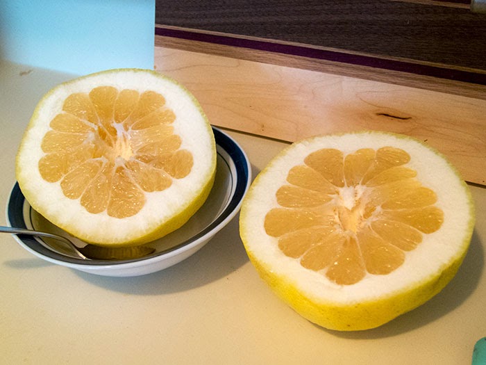 My parents also brought a bag of California naval oranges, oroblanco grapefruit, and avocados.
