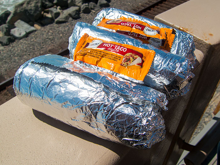 The best reason to drive to San Clemente: beach burritos from Pedro’s Tacos stuffed with beans, rice, crispy potato and topped with taco sauce.