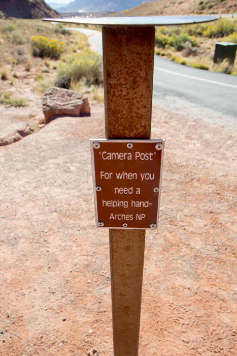 They were thoughtful enough to provide a camera post, “for when you need a helping hand – Arches NP”.