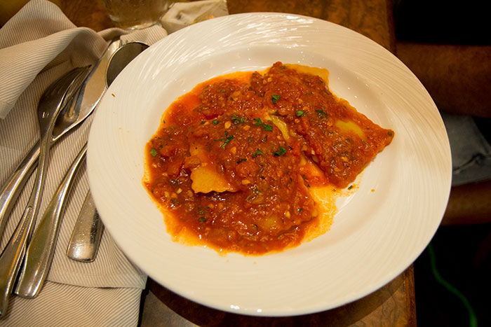 But the real life-changing dish was the spinach-artichoke vegan ravioli with a house-made marinara. Hands-down no-question the best ravioli I’ve had in my life. Probably the best marinara I’ve had in my life, too. Whatever you imagine that this tastes like, it tastes better. Although I’d already made a few trips to the buffet, and although I’d promised room for more enchiladas, I ended up abandoning my plans to finish off most of this plate.