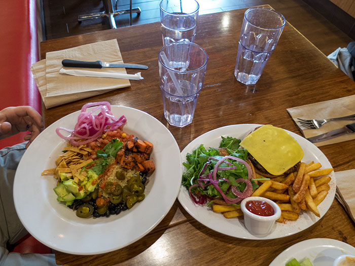 Steven’s Sonoran bowl and Daddy’s cheeseburger and fries.