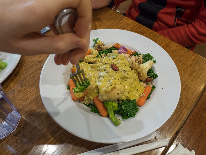 I’m not sure if I overhyped the buffalo wings at the Veggie Grill, but either way, Nene and Steven had their first Veggie Grill experience while we were on our way to drop Nene off at the airport.