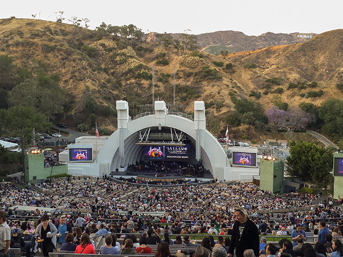 La La Land in Concert is touring, and if you get the chance, go see it. It was phenomenal. Basically, Justin Hurwitz stands before the orchestra, baton frozen mid-air, watching the score-less movie play behind them and says “Okay … now!” at the exact millisecond to make the live music blend seamlessly with the on-screen images. Plus they had some of the film’s minor characters on stage repeating their singing/dancing from the film. And it never hurts to attend in the place the film is about. Dozens of women wore dresses from the film. The actual film costumes were on display at the entrance. Damien Chazelle made an on-stage appearance. The best part of it all, however, was that the movie (which included two new songs) was punctuated by fireworks.