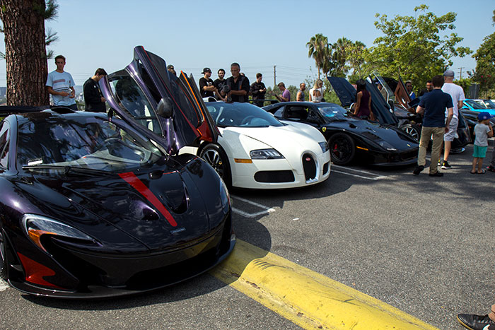 The second Sunday of every month, we common mortals are allowed near automotive magnificence. And I had no idea until my dad enlightened me recently. This is Sunset GT, and it is mind-blowing. You forget that it’s nearly 100 degrees outside and you’re standing in the sun hoping for a clear shot of the Bugatti.