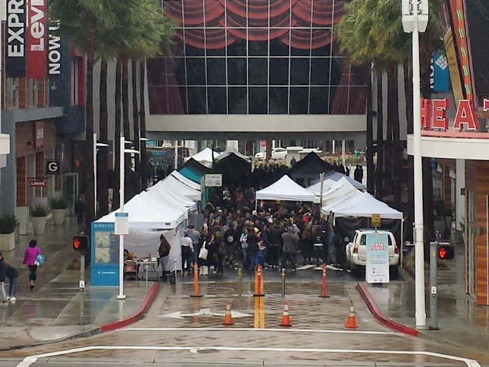 Long Beach started a monthly vegan market place and food court at the downtown outlet mall. Vegan District at the Pike was supposed to kick off the first Saturday in February but was canceled due to high wind and flood advisories. So I wanted to show support when they gave it another try the first Saturday in March. It was still raining (more like bucketing), and I was afraid no one would leave the house.