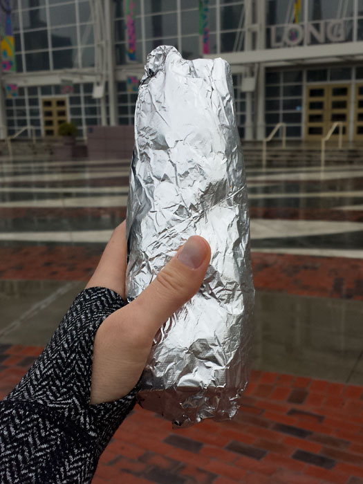 The burrito was worth the wait! This is Eat Love’s Hash & Dash Burrito with tater tots and vegan eggs, cheese, and a piece of fried chicken. Now I just have to wait until Vegan District in April.