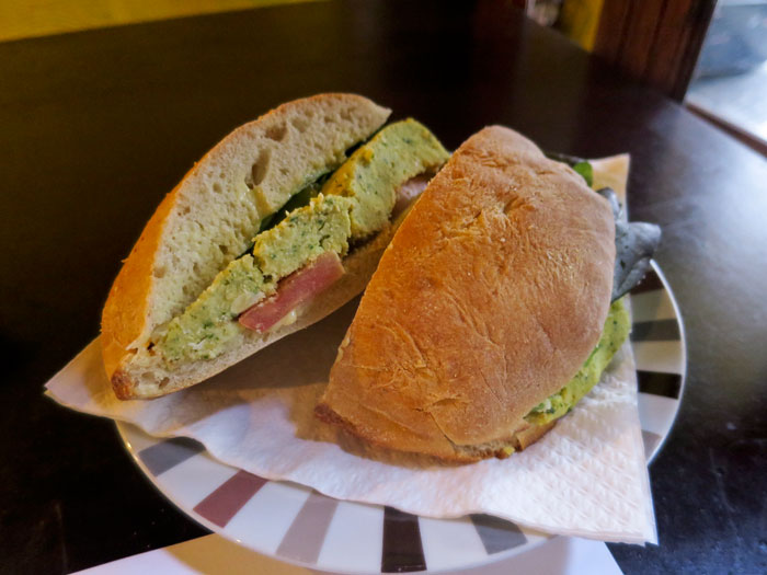 Dinner at Taberna Açor. This is the vegan chickpea-lupin burger with yam mayo and tofu mayo.