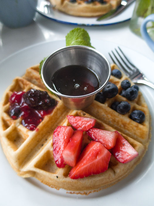 Lunch at The Butcher’s Daughter. Occasionally you find dishes where the vegan version is better than the regular version, and this waffle is a good example. It’s made of rice flour and served with fresh fruit, local berry compote, and revolutionary vegan whipped strawberry-butter.