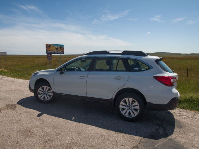 From Denver I drove to Wyoming and then crossed the border to a new state–South Dakota! I rented a Toyota Yaris (or similar) and then refused the Subaru upgrade at check-in. But they gave me the Subaru anyway for free! (I suspect that means they’d rented all their Yari.) I’d always wanted to try driving a Subaru. I can see why people buy them if they plan to go on a lot of outdoor adventures.